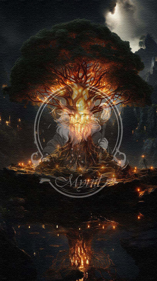 Gloeiende boom op het water