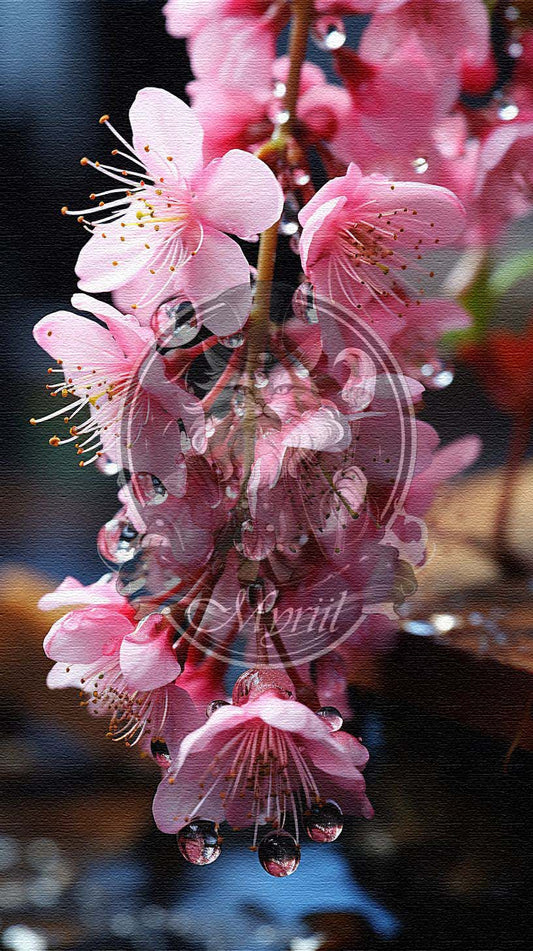 Roze bloemenkoord na regen