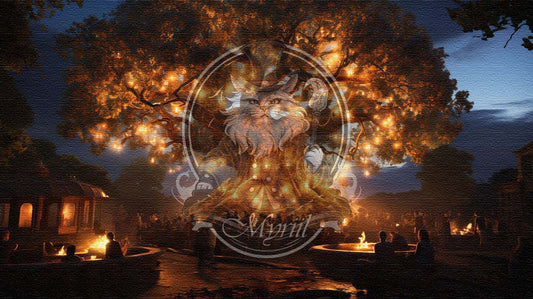 Gigantische verlichte boom op een zomeravond